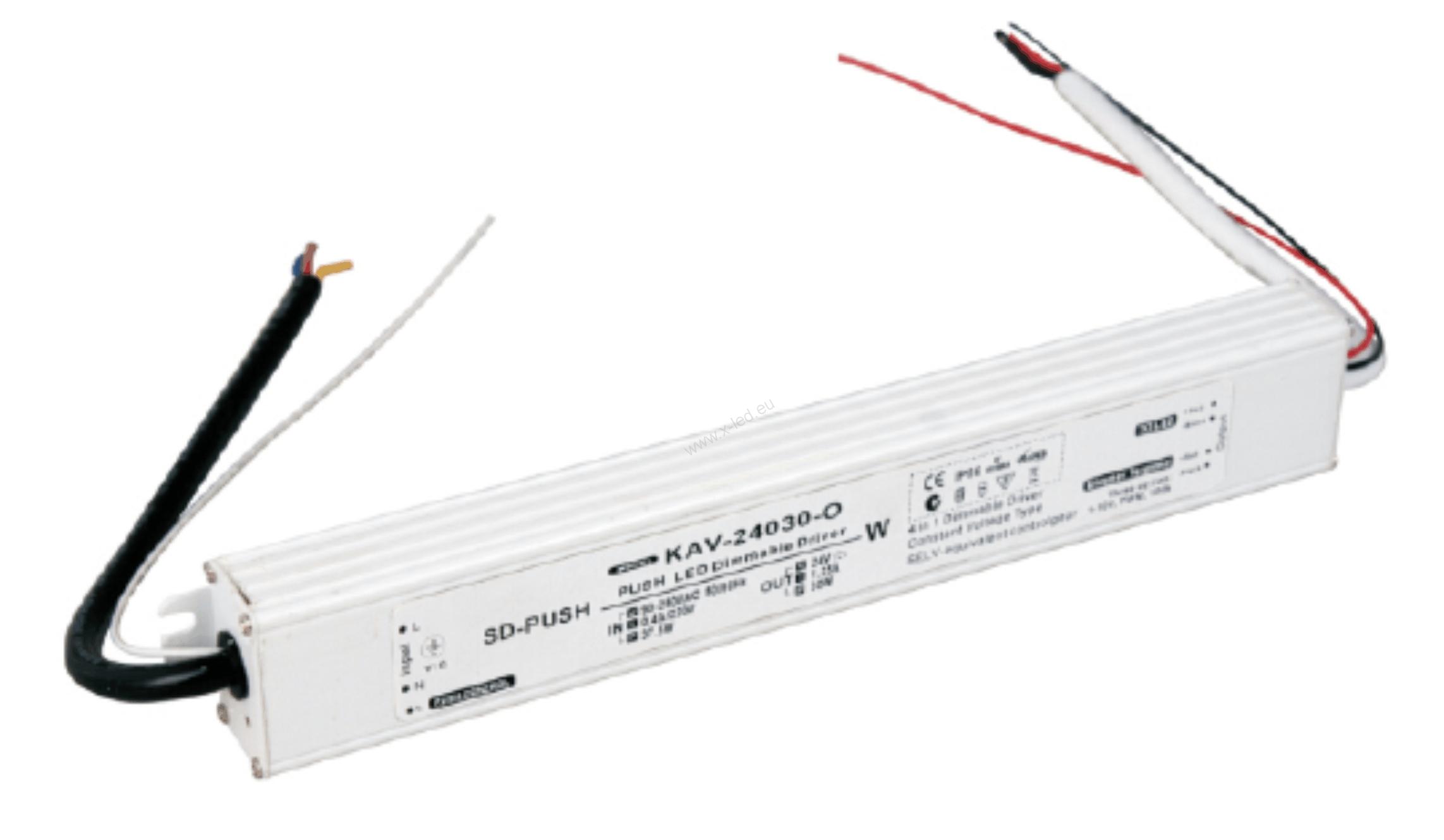 Jako zdroje konstantního napětí se označují takové zdroje, na jejichž výstupu naměříme udané napětí i bez zátěže. Vlastně to není nic jiného než obyčejný adaptér s možností stmívání změnou výstupního napětí. Pro stmívání lze použít ovládací signál (panel, prvek atd.) PWM,0-10V nebo ovládací talčítko PUSCH či ovládací rezistorový stmívač 100K.