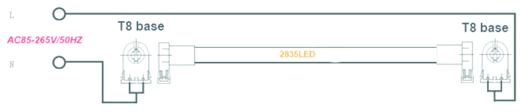 Zářivkové trubice T8 jsou standardně osazeny vysoce svítívými SMD LED diodami s vysokou životností v počtu od 140 do 340 ks osazených ve více řadách. Osazení je instalováno do AL nosiče, který zároveň slouží jako chladič. Samotná svítící plocha je zakryta buď čirým nebo mléčným plexi sklem.